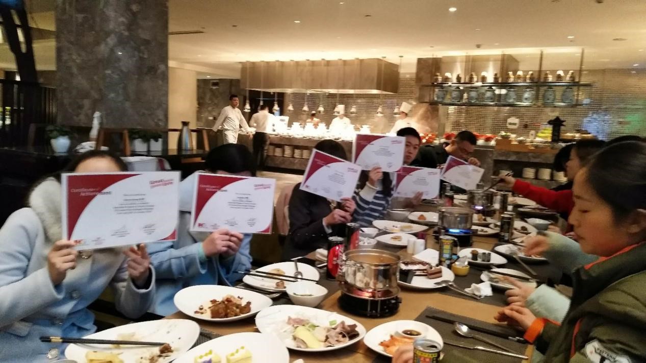 为期六个月的实习已接近尾声。1.15日晚上六点,在人力资源部的组织下,我校旅游管理专业2015级部分同学在成都温江皇冠假日酒店的全日餐厅温·咖啡厅参加了实习生欢送会,莅临会场的酒店领导有:总经理Peter Wong ,行政助理Lucy Qi ,房务总监Spike Li,人力资源总监Jordon Deng,餐饮总监Nick Chen以及负责我们学校的人力资源主管Caroline Jiang。